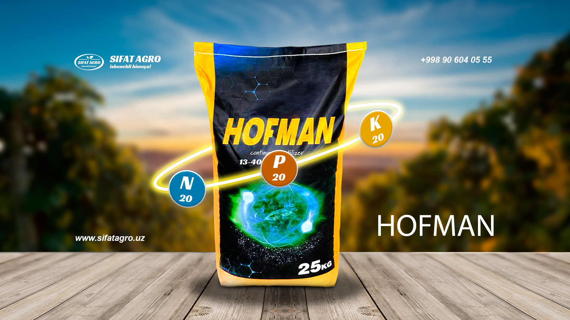 HOFFMAN 10-10-40 agro-ozuqasi tomchilatib sug’orishda va barg orqali purkashda samarali ta’sir ko’rsatadi. Tarkibidagi asosiy N(azot) P(fosfor) K(kaliy) dan tashqari bir qator qo’shimcha mikra makro elementlar mavjud. Iz elementri EDTA bilan xelatlanganligi tufayli yuksak samaradorlik beradi va shu tufayli o’simlik uni osonlik bilan o’zlashtiradi.