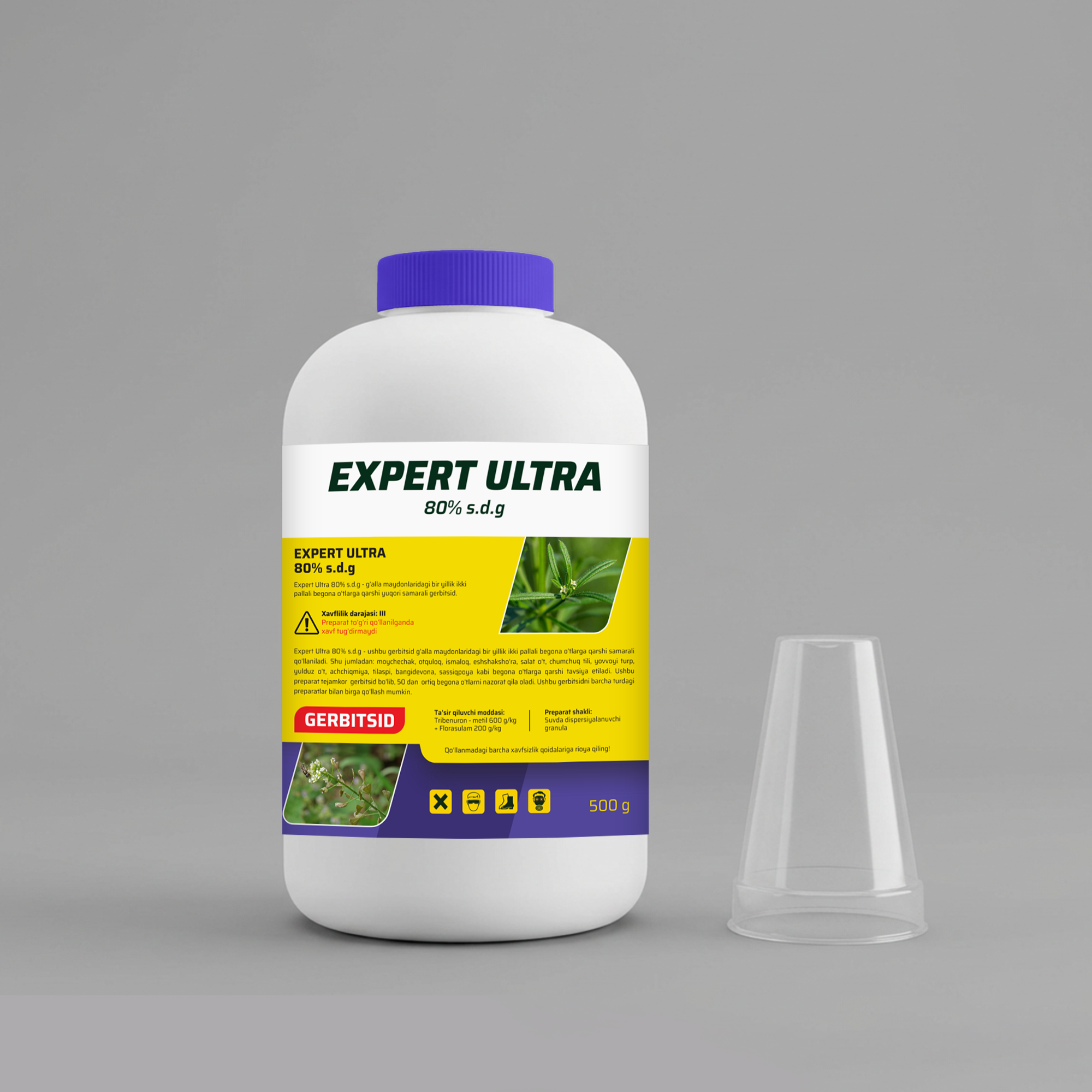 Expert Ultra 80% s.d.g – ushbu gerbitsid g’alla maydonlaridagi bir yillik ikki pallali begona o’tlarga qarshi samarali qo’llaniladi. Shu jumladan: moychechak, ot quloq, ismaloq, eshshaksho’ra, salat o’t, chumchuq tili, yovvoyi turp, yulduz o’t, achchiqmiya, tilaspi, bangidevona, sassiqpoya kabi begona o’tlarga qarshi tavsiya etiladi. Ushbu preparat tejamkor gerbitsid bo’lib, 50dan ortiq begona o’tlarni nazorat qila oladi. Ushbu gerbitsidni barcha turdagi preparatlar bilan birga qo’llash mumkin.